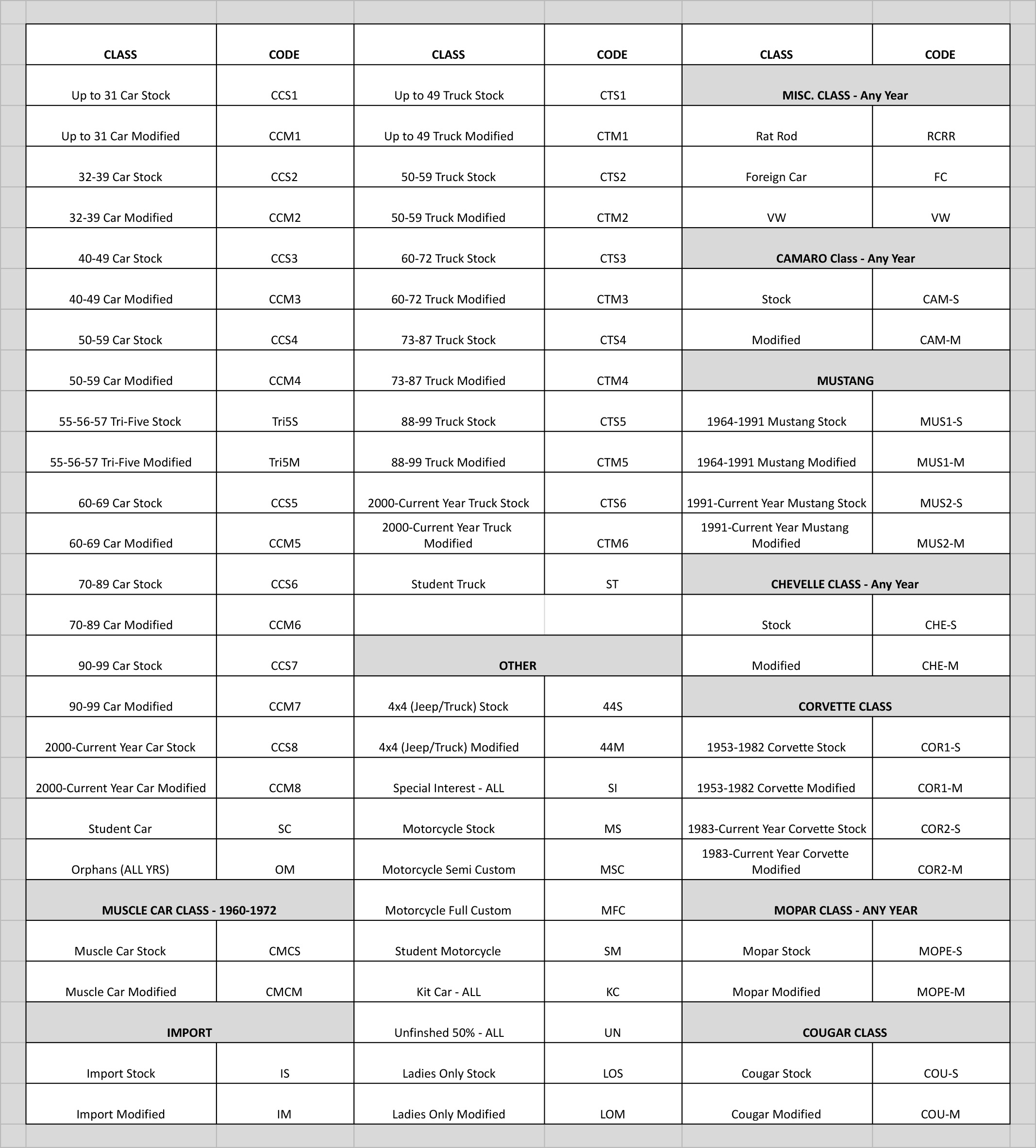 - Modified Class – Vehicles with aftermarket modifications, custom builds, or performance enhancements